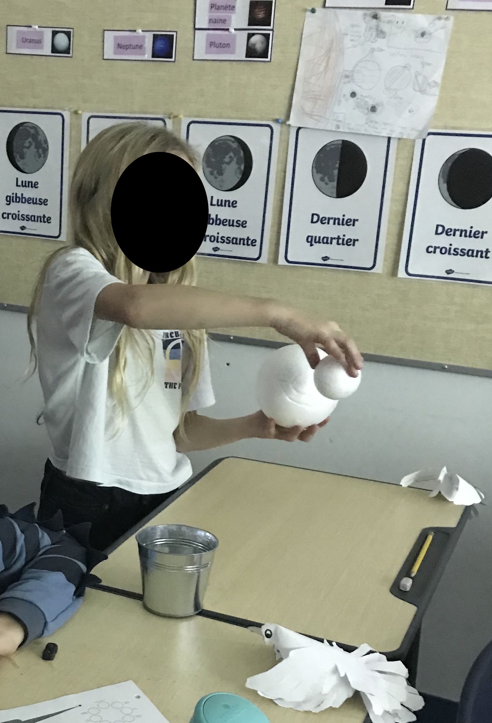 The students got first to observe the moon during an entire moon cycle. They had a sheet on which they had to note the date and draw their observations of the Moon. In case of a cloudy sky, I had reffered the NASA website to them, on which you can observe the Moon as well.